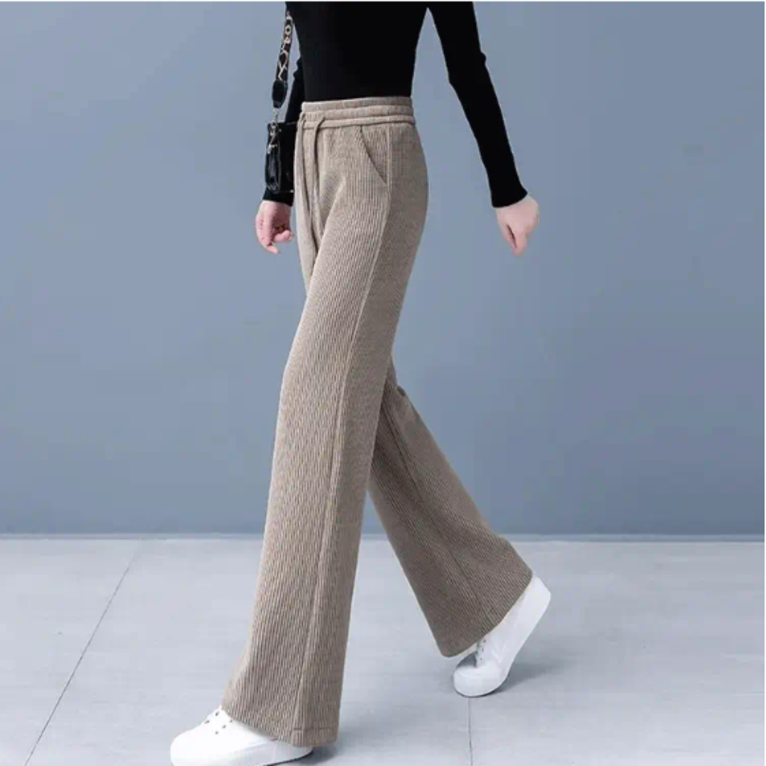Akiko – 暖かいフリース裏地付きエレガントワイドパンツ