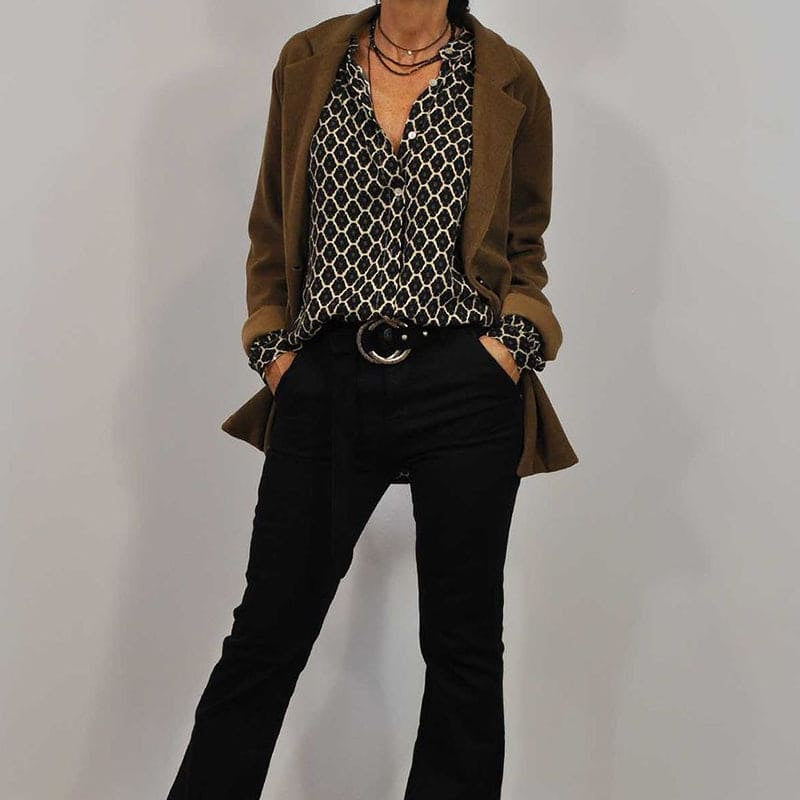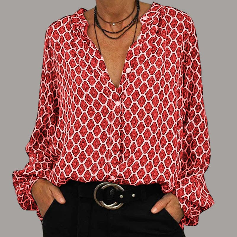 楽なスタイル:Geertje リラックスVネックミディシャツは、クラシックなVネックデザインと大胆な幾何学プリントを組み合わせ、カジュアルな外出やドレスアップした機会に最適です。時代を超えたエレガンスが、楽に目立つことを保証します。ジーンズやテーラードパンツと合わせると、多用途なスタイルになります。