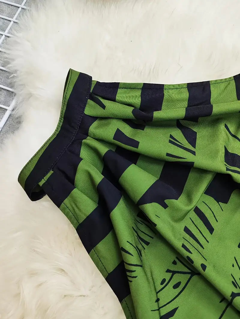 大胆でトレンド感のあるデザイン: Zirina - スタイリッシュな2点セットは、目を引くトロピカルリーフプリントが自信に満ちたファッションステートメントを演出します。ハイネックのクロップドトップとワイドレッグパンツの組み合わせが、スタイルを美しく引き立てます。トレンド感をキープしつつ、存在感を放ちたい方におすすめです。